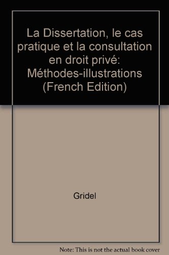 Download La Dissertation, le cas pratique et la consultation en droit privé : Méthodes - Illustrations PDF online Download or read online books in PDF, EPUB, Tuebl, and Mobi Format. Click Download or Read Online button to get La Dissertation, le cas pratique et la consultation en droit privé : Méthodes - Illustrations PDF Free ...