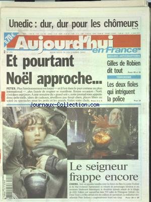 PDF AUJOURD'HUI EN FRANCE [No 470] du 18/12/2002 - UNEDIC - DUR DUR POUR LES CHOMEURS - NOEL APPROCHE - MESURES ANTICHAUFFARDS - GILLES DE ROBIEN DIT TOUT - TERRORISME - LES DEUX FIOLES QUI INTRIGUENT LA POLICE - CINEMA - LE SEIGNEUR DES ANNEAUX ePub